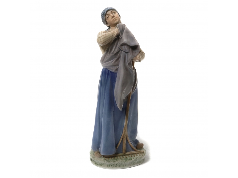 Фарфоровая фигура (статуэтка) "Женщина с граблями". Ручная подглазурная роспись.