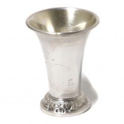 Высота: 5 см, диаметр верха: 3,8 см. Объём: 20 мл. Вес: 14 граммов серебра 830 пробы.