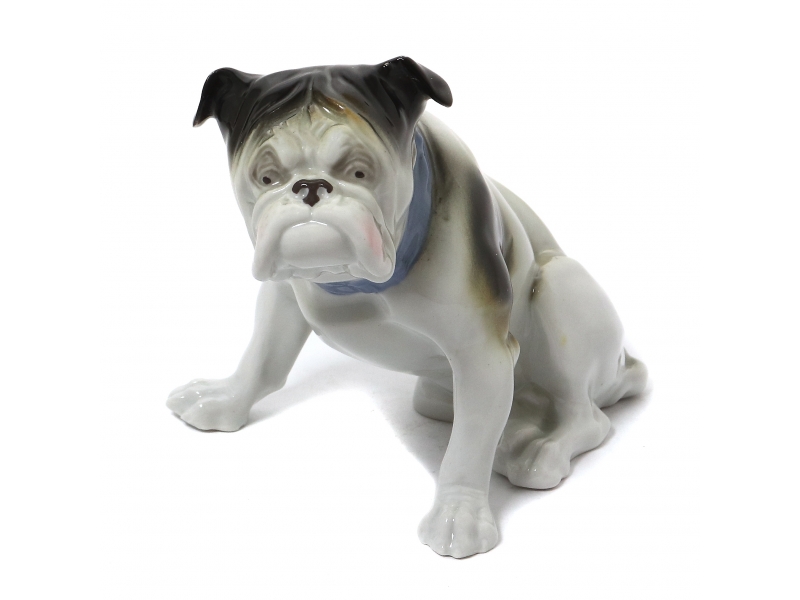 Фарфоровая фигура (статуэтка) "Бульдог". Ручная подглазурная роспись.