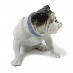 На левом ухе пятнышки от лопнувших пузырьков глазури. ============================== Porcelain figurine "Bulldog". Hand-painted underglaze.