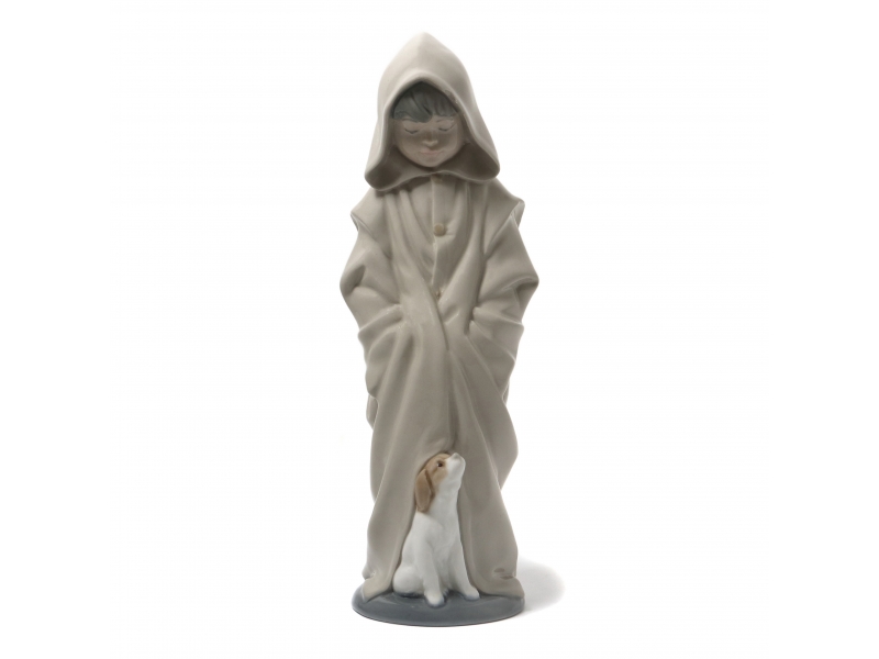Фарфоровая фигура (статуэтка) "Мальчик в капюшоне с собакой". Ручная подглазурная роспись.