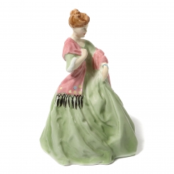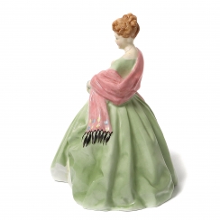 Фарфоровая фигура (статуэтка) "Первый танец" (Девушка в зеленом платье и розовом шарфе). Ручная роспись.