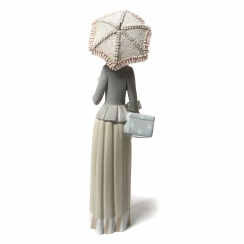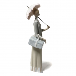 333741 - Девушка с подарочной коробкой и зонтом, максимальная высота 37 см, длина основания 9,5 см, ширина 6 см, Испания, Lladro