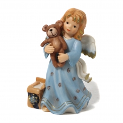 Фарфоровая фигура (статуэтка) "Девочка-ангел обнимающая плюшевого мишку с подарками" из коллекции "Ежегодный ангел". Ручная роспись. В оригинальной коробке.