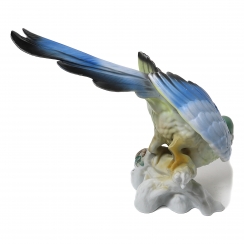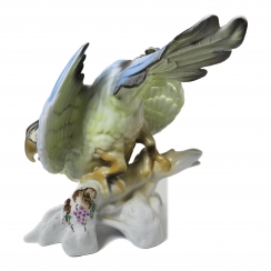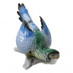 Большая фарфоровая фигура (статуэтка) "Попугай на ветке". Ручная подглазурная роспись.