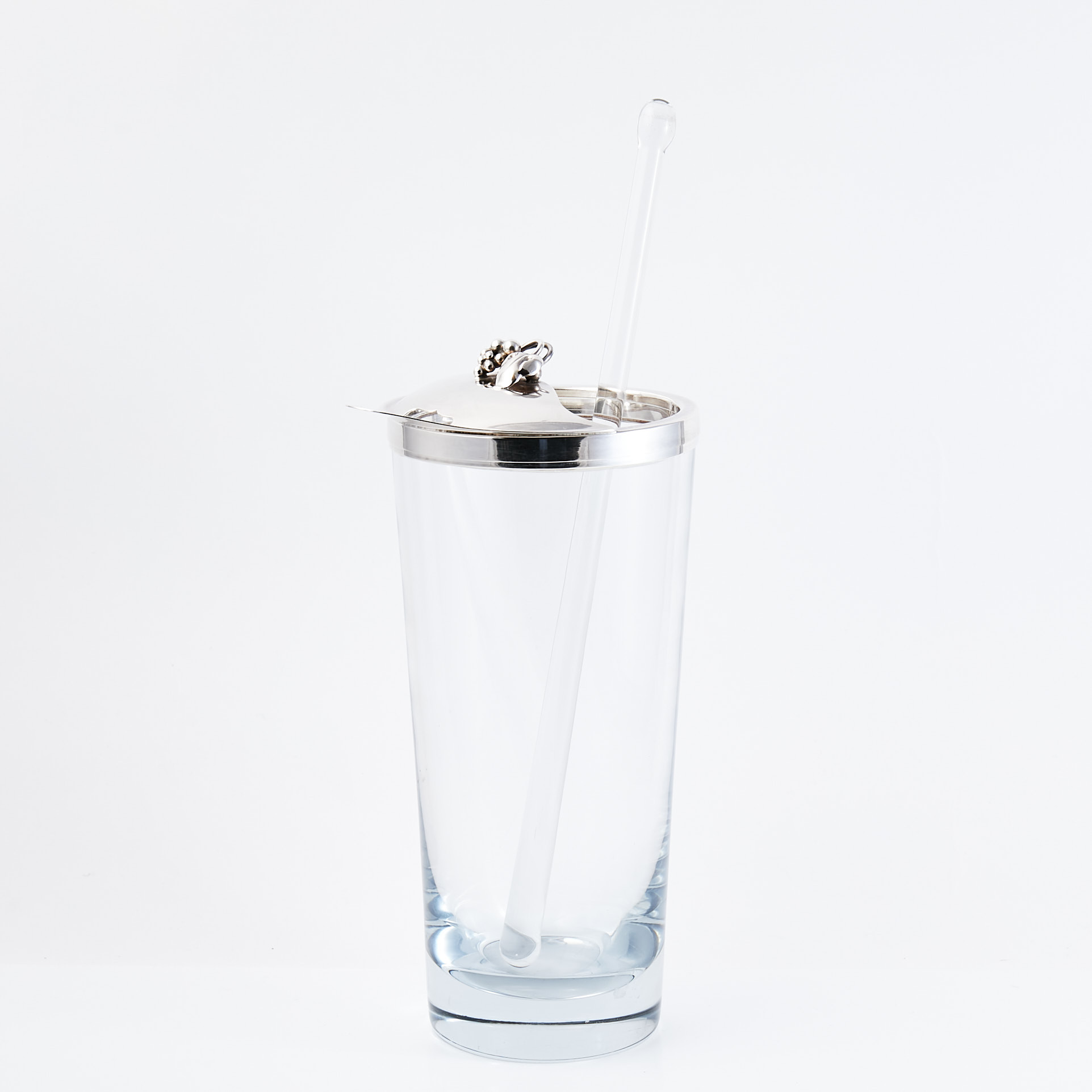 Кувшин для коктейля со сти́рлером (мешалкой), стекло, серебро 925 пр, высота по край 21,4 см, диаметр верха 10 см