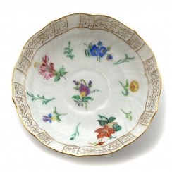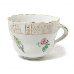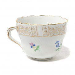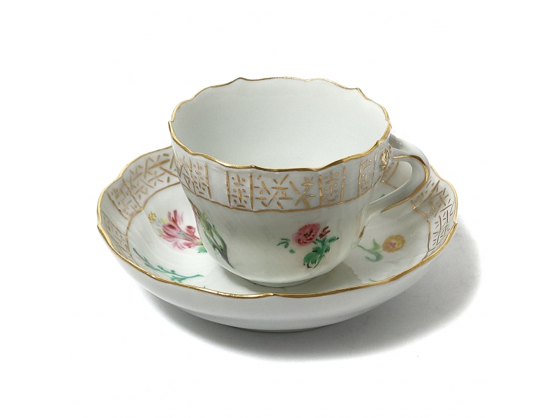 Высота чашки 5 см, диаметр верха 6,5 смДиаметр блюдца 11 см, высота 2,9 смпоперек заводского клейма четыре полосы