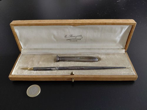 Длина ручки с пером 20 смДлина печати 8,5 см, размеры клише1,6 х 1,3 смРазмеры футляра 22,7 х 6,5 х 3 см