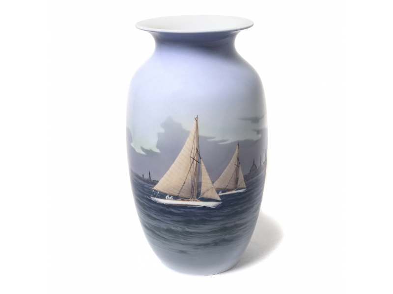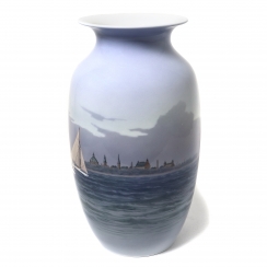 Ваза, декорированная панорамным пейзажем с парусниками, высота 32,5см, диаметр основания 12 см, диаметр верха 14,3 см, 54, RC_2764_2983