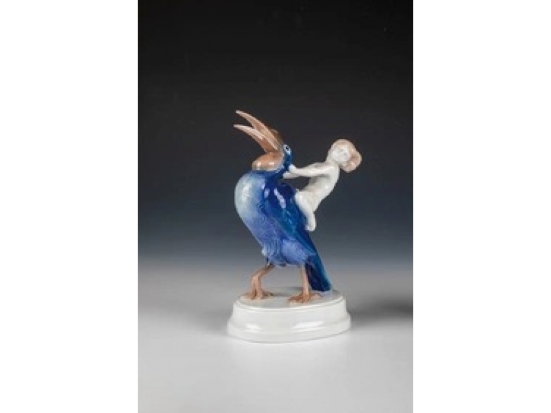 335498 - Мальчик верхом на тукане, высота 23,7 см, основание 13,8 х 10,5 см, Германия, Rosenthal