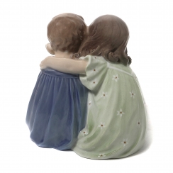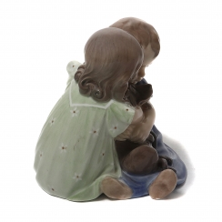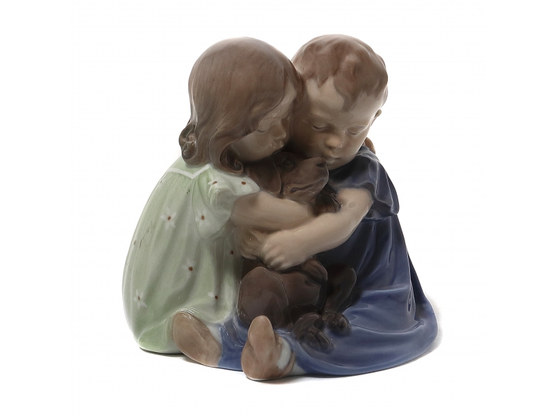 Фигура производилась также после объединения фабрик Royal Copenhagen и Bing & Grondahl (1985-1989) под брендом Royal Copenhagen, номер модели: 070. ============================== Porcelain figurine "Children with dog". Hand-painted underglaze.