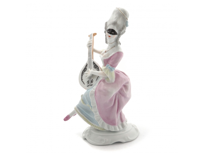 Фарфоровая фигура (статуэтка) "Дама в маске с лютней". Ручная роспись.