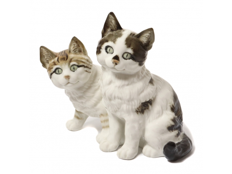 Фарфоровая фигура (статуэтка) "Два кота". Ручная подглазурная роспись.