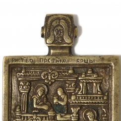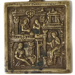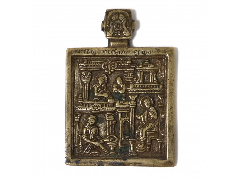 Размеры (без подвеса): 4,5 х 5 х 0,3 см, высота с подвесом: 6,5 см. ===================== Cast icon "Nativity of the Blessed Virgin Mary".