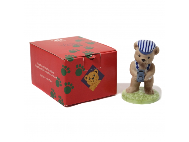 Годовая фарфоровая фигура (статуэтка) "Медведь Виктор c фотоаппаратом" из серии о семье плюшевых медведей Виктора и Виктории. В оригинальной коробке.