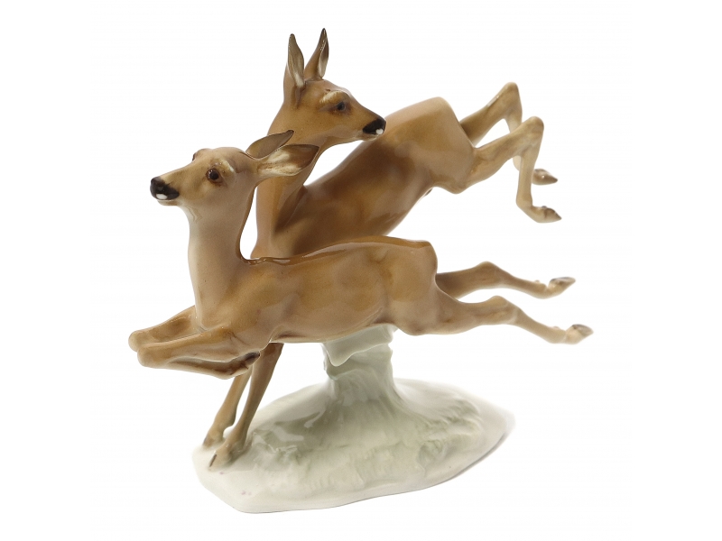 337050 - Бегущие косули (?), высота 11,5 см, основание 8,5 х 5 см, Германия, Hutschenreuther