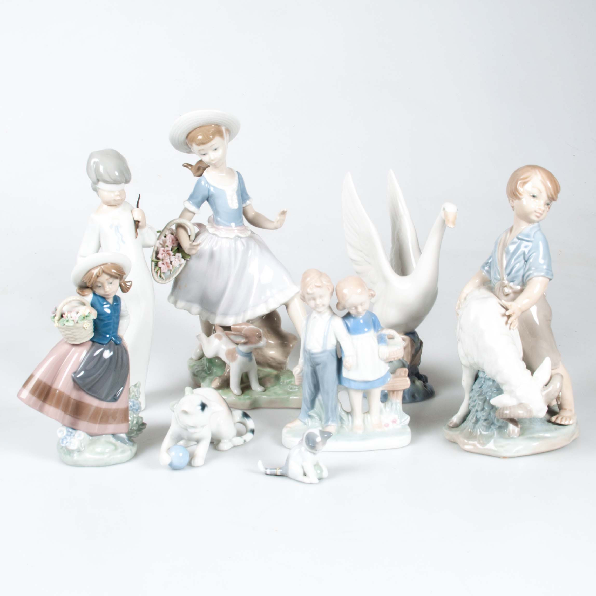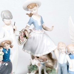 305973 - Девочка с цветами, LL_01005221 397887 - Мальчик и девочка с корзиной у плетня, высота 14,4 см, основание 10,5 х 5,5 см, Европа 358872 - Лебедь над водой, высота 20,5 см, NLL_02000107 365573 - Девочка, бегущая с цветами, и щенок, высота 26 см, основание 17 х 9 см, Испания, Lladro 365610 - Кошка, играющая с мячом, высота 6 см, длина 10,5 см, Германия 380515 - Амур, высота 23,5 см, основание 6,5 х 5 см, Испания, Lladro 237456 - Мальчик с бараном, высота 22 см, основание 13,5 х 11 см, Испания, NAO by Lladro