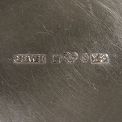 Подставка произведена в Швеции, г. Мальмё, 1949 год, мастерская Gewe Silvervarufabriken (годы работы: 1939-1984). Ситечко произведено в Голландии, ввезено в Швецию, первая половина 20 века. Государственное пробирное клеймо Швеции для ввезенных серебряных изделий.