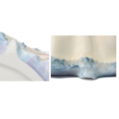 There is a chip on the toe of the shoe, visible only from the base; there is a chip on one flower.