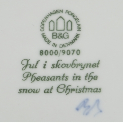 Denmark, Copenhagen, Bing & Grondahl, year 1970. Artist: Henry Thelander. Model: 8000/9070 Factory mark.