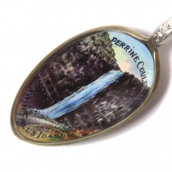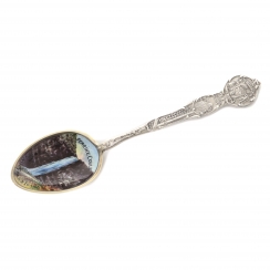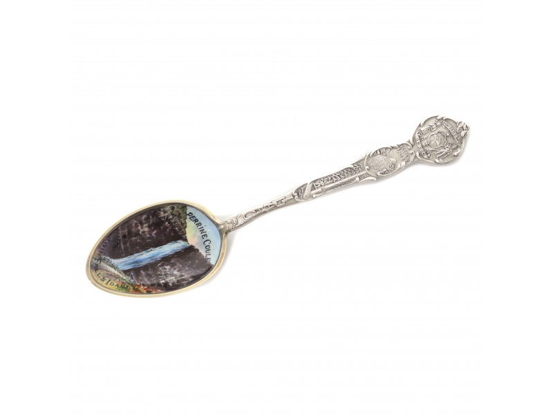 Длина: 13,8 см. Вес: 23 грамма серебра 925 пробы. ============================= Silver souvenir tea spoon "Shoshone Falls, Idaho", enamel, The scoop is decorated with an image of Perrine Coulee Falls in Twin Falls, Idaho.
