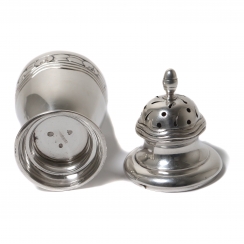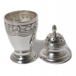 Высота: 16,8 см, диаметр основания: 6 см. Вес: 138 граммов серебра 826 пробы. =========================== Silver sugar shaker castor.