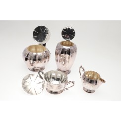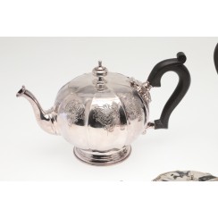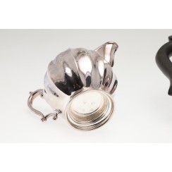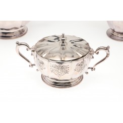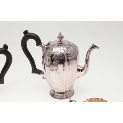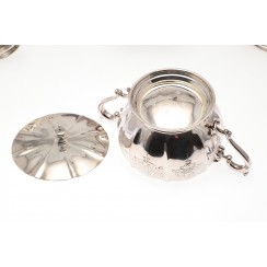 Чайно-кофейный сервиз, 4 предмета, Ирландия, общий вес 2458 гр, 925 пр Высота кофейника по хватку на крышке 20,5 см Высота чайника по хватку на крышке 15,8 см Высота сахарницы по хватку на крышке 9,5 см, высота по край чаши 7 см, диаметр верха чаши 10,4 см Высота молочника по носик 8,5 см