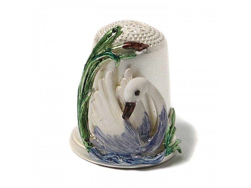 339078 - Наперсток (с накладным лебедем). Серебро, эмаль. Вес 7 гр, 925 пр. Высота 2,3 см, диаметр 1,8 см