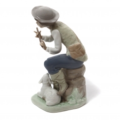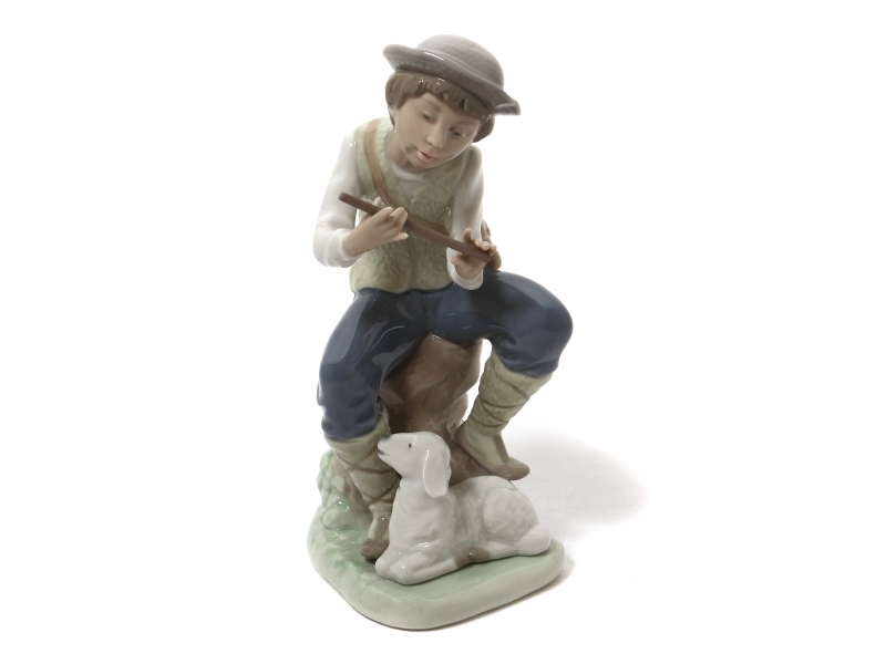 Фарфоровая фигура (статуэтка) "Пастух с дудочкой и ягненок" (Песня пастуха). Ручная подглазурная роспись.
