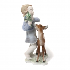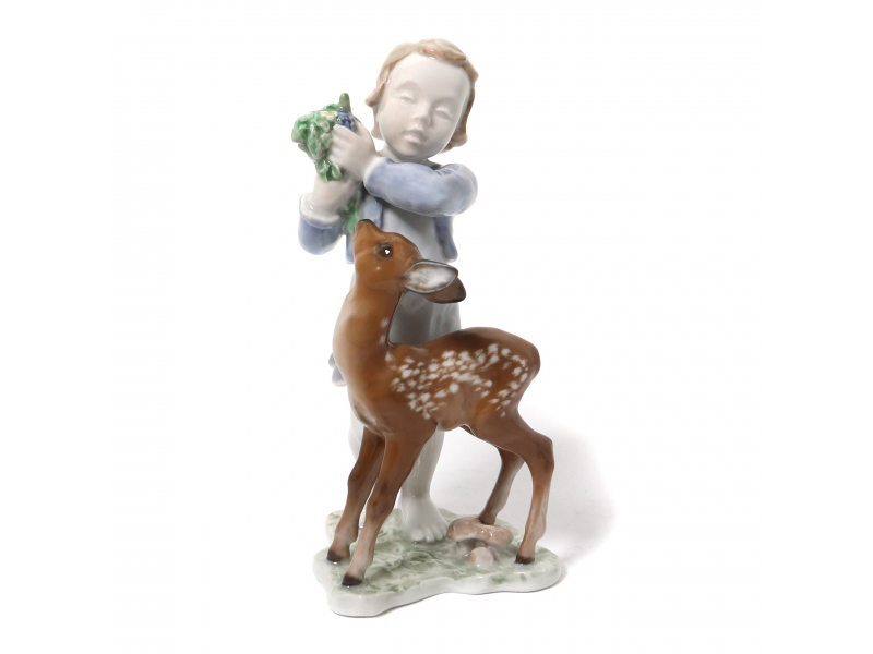 Без сколов, повреждений и без реставраций. ================================= Porcelain figurine "Child with Deer". Hand-painted underglaze.