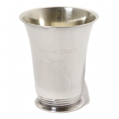 С гравировкой. Был вторым призом за какие-то соревнования. ============================== Silver beaker (cup) on the base.
