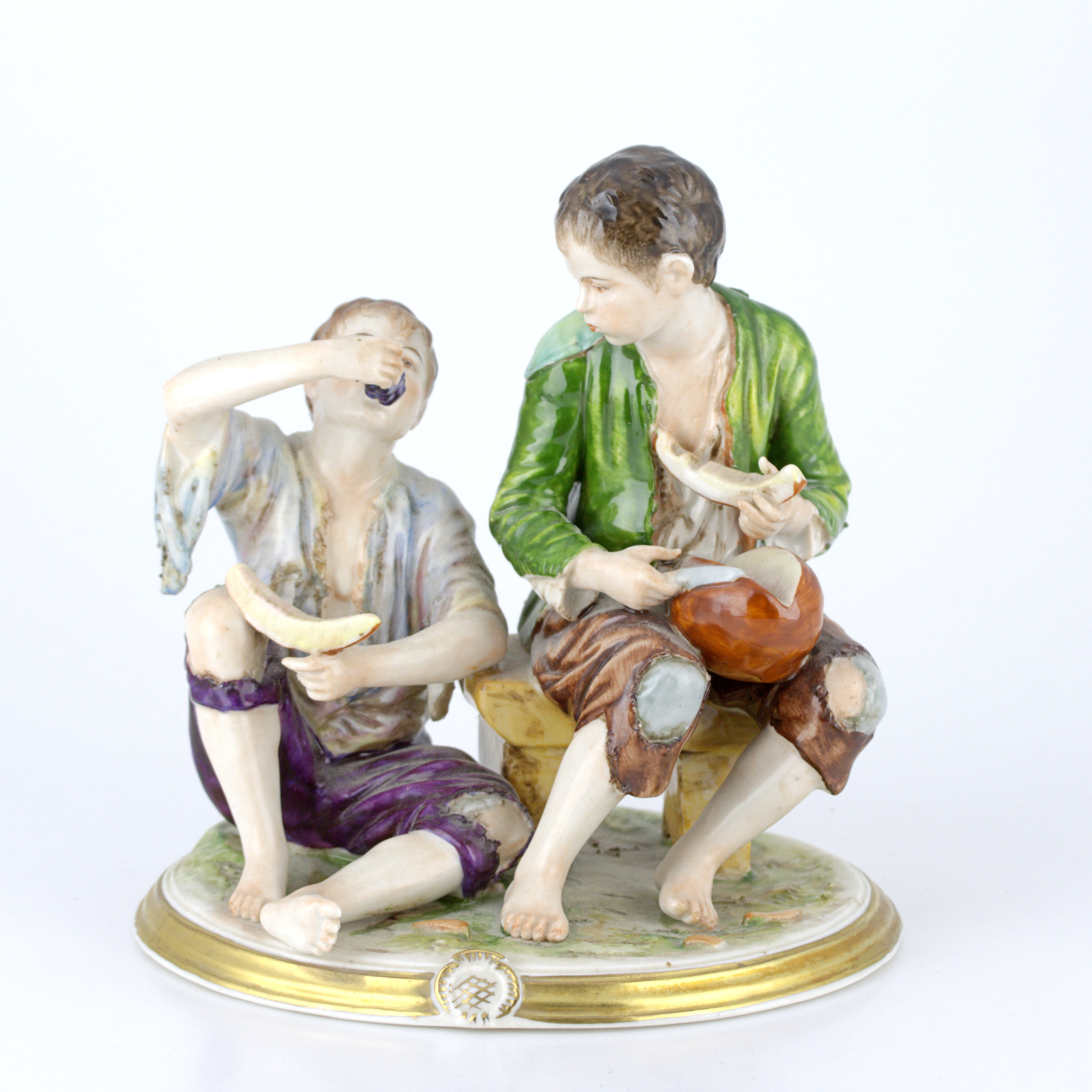 Мальчики с дыней и виноградом, высота 18 см, основание 17,5 х 15 см, Германия, Rudolf Kammer
