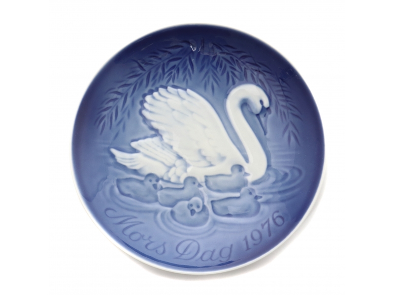 Блюдце первого сорта. Без сколов, повреждений и без реставраций. ================================ Wall porcelain saucer "Swan with Cygnets" (Svane med unger) from a series of "Mother's Day".
