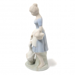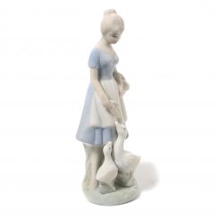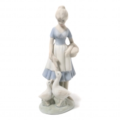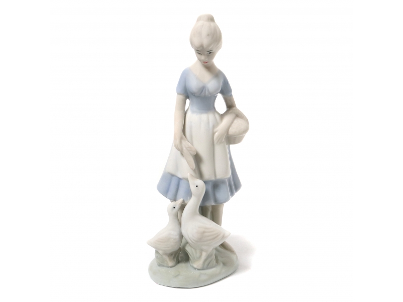 Фарфоровая фигура (статуэтка) "Девушка, кормящая утят". Ручная подглазурная роспись.
