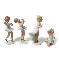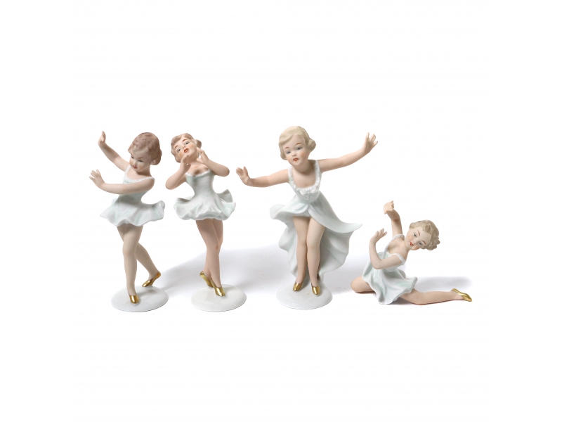 Без сколов, повреждений и без реставраций. =============================== Collection of four porcelain figures of little ballerinas. Hand-painted.