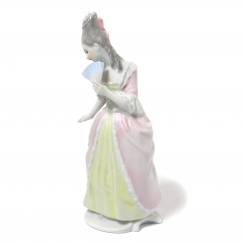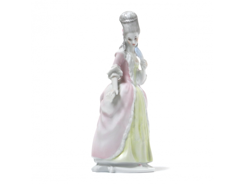 Фарфоровая фигура (статуэтка) "Танцовщица рококо" (Девушка с веером). Ручная роспись.
