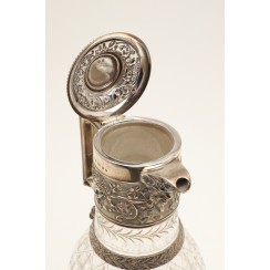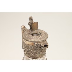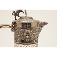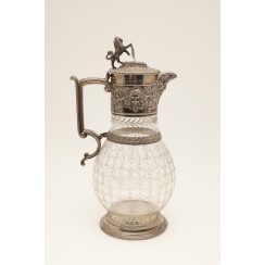 Кувшин. Стекло, серебро 925 пробы. Англия. Высота по хватку на крышке 30,5 см, диаметр основания11,3 см, диаметр горла 7 см