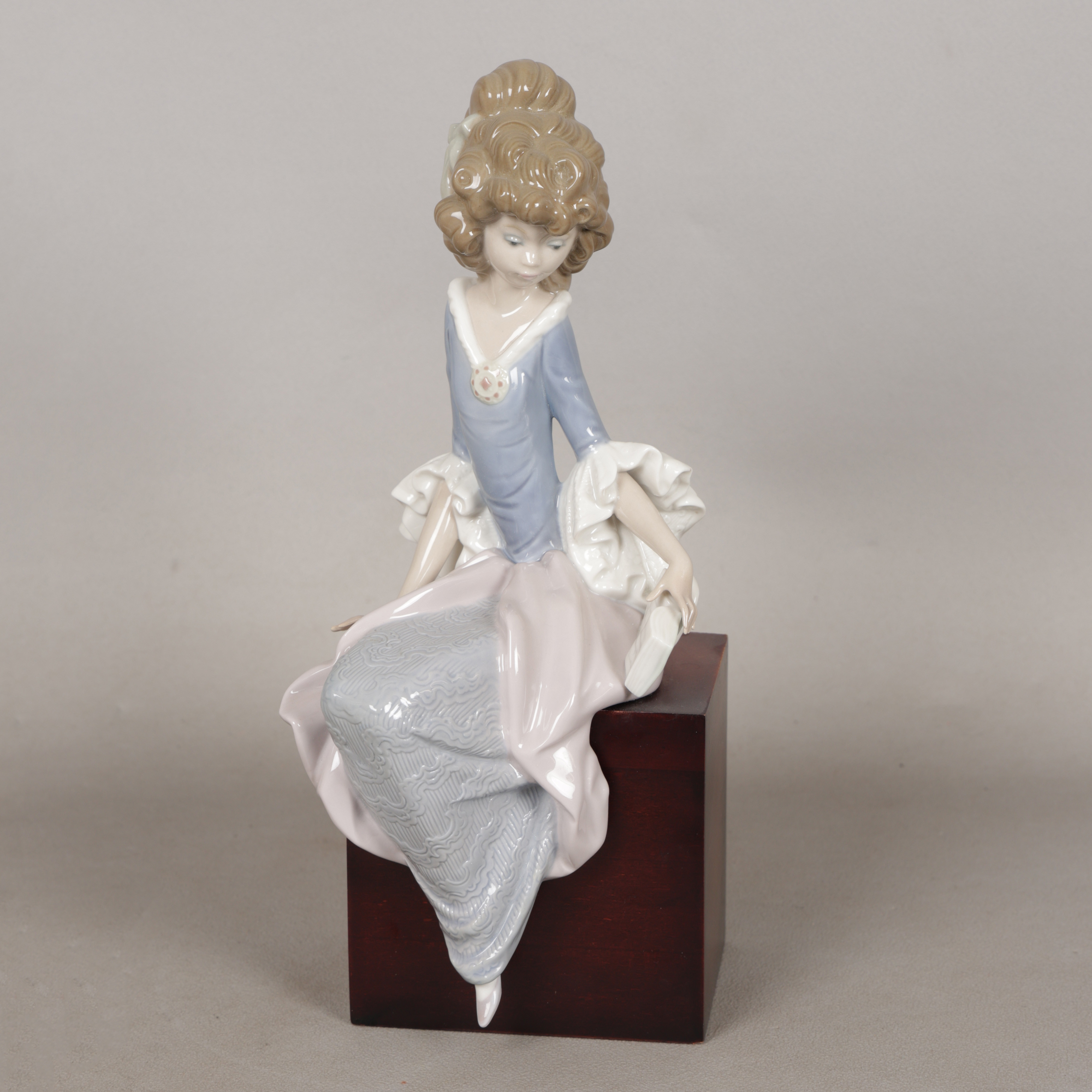 342305 - Девушка с книгой, сидящая на деревянной подставке, высота 11,5 см, ширина 9 см, Мспания, LLadro