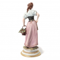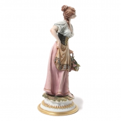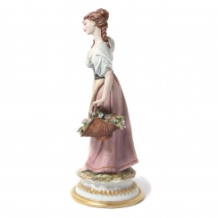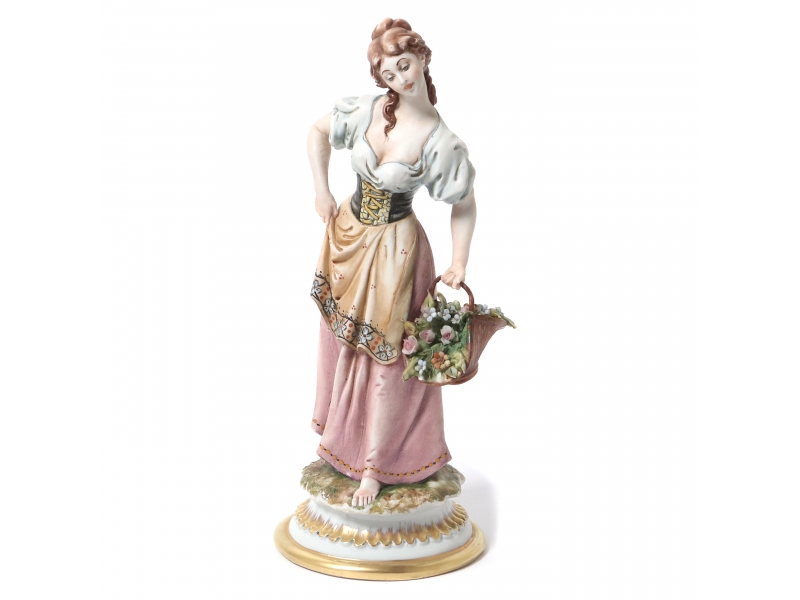 Фарфоровая фигура (статуэтка) "Девушка с корзиной цветов". Ручная роспись.