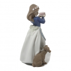 Фигура склеена в районе груди девочки. =========================== Porcelain figurine "Puppy's birthday". Hand-painted underglaze.