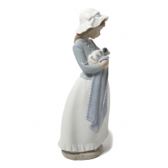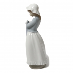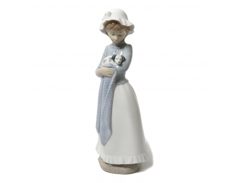 Фарфоровая фигура (статуэтка) "Девочка с собакой (со щенком)". Ручная подглазурная роспись.