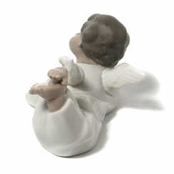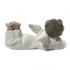 Фарфоровая фигура (статуэтка) "Лежащий ангел". Ручная подглазурная роспись.
