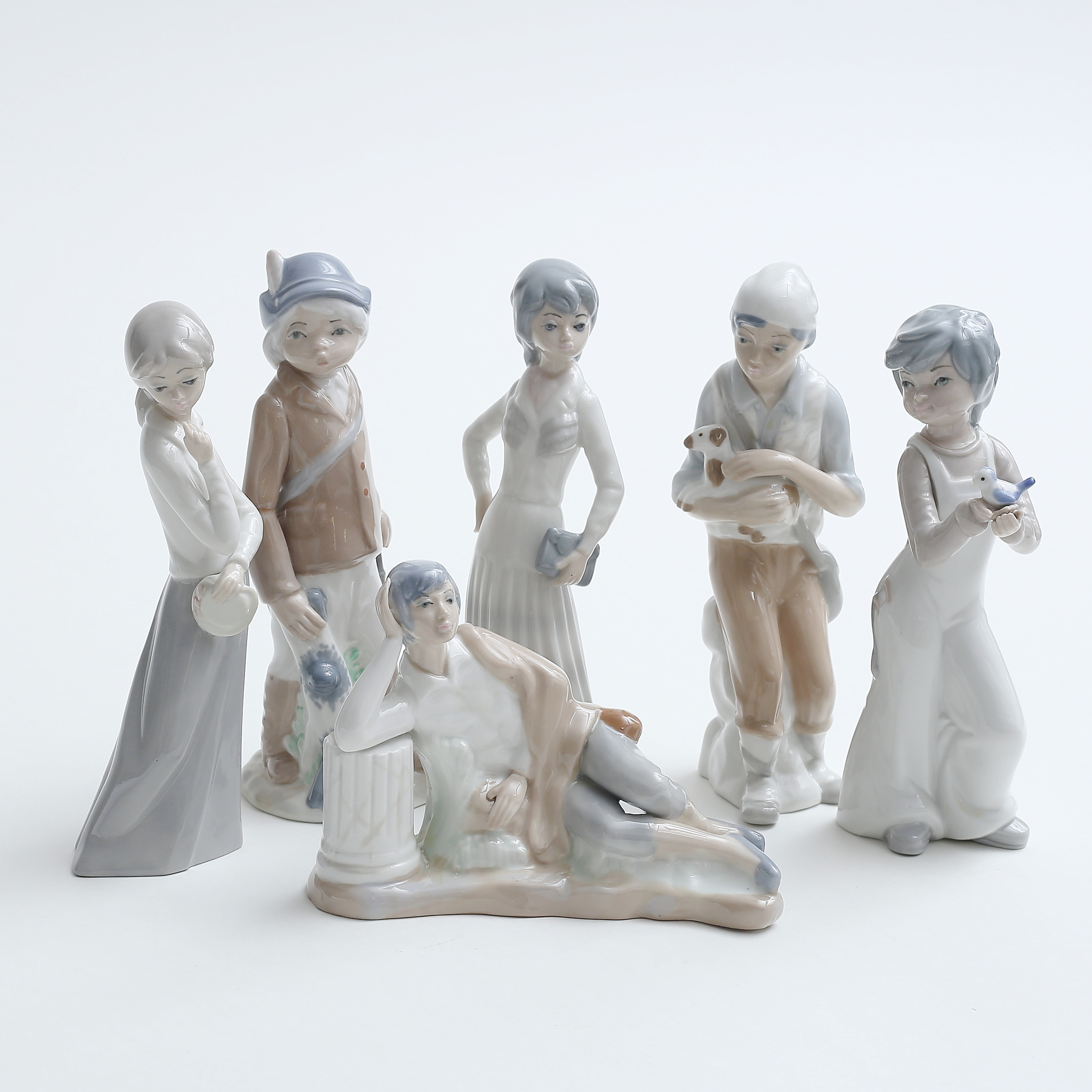 247415 - Мальчик с ягненком, высота 22,5 см, длина 8,* см, ширина 6,3 см, Испания, Casades 383102 - Девушка с клатчем, высота 22 см, длина 6 см, ширина 5,7 см, Испания, Casades 372471 - Мальчик с птицей, высота 21,7 см, длина 8 см, ширина 5,5 см, Испания, Casades 213942 - Мальчик - охотник, высота 22,5 см, основание 8,2 х 8 см, Испания, Casades 320693 - Девушка со шляпой в руке, высота 22 см, длина 7,7 см, ширина 5,5 см, Испания, Casades 327438 - Отдыхающий юноша, высота 13,5 см, длина 10,5 см, ширина 10 см, Испания, Casades
