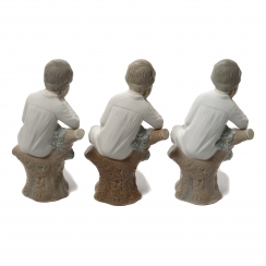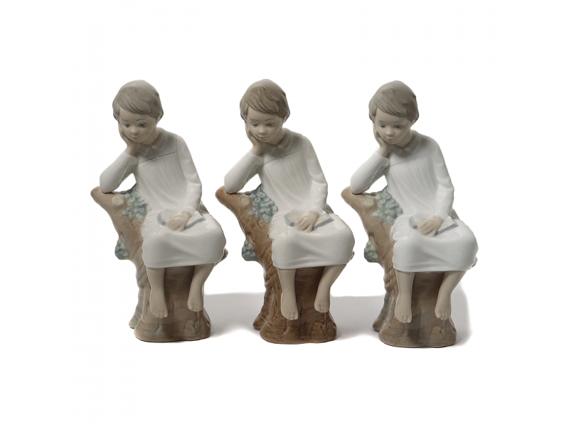 Три фарфоровые фигуры (статуэтки) "Маленький мыслитель (мальчик с книгой)". Ручная подглазурная роспись.