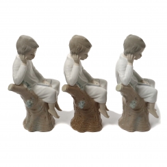 Без сколов, повреждений и без реставраций. ================================= Three porcelain figures "Thinker little boy with a book". Hand-painted underglaze.