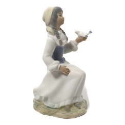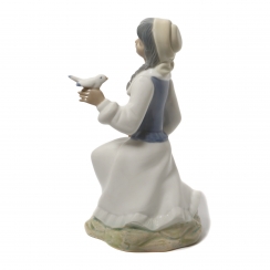 Фарфоровая фигура (статуэтка) "Девочка с голубем". Ручная подглазурная роспись.