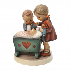 Фарфоровая фигура (статуэтка) "Счастливое событие" (Девочка с куклой и мальчик у колыбели). Ручная роспись.