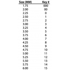 3 = 3.00 mm. 5 = 3,50 mm. 7 = 4.00 mm. 9 = 4,50 mm. 11 = 5.00 mm.