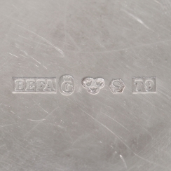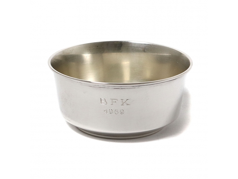 Высота: 4,2 см, диаметр верха: 9 см. Вес: 63 грамма серебра 830 пробы.