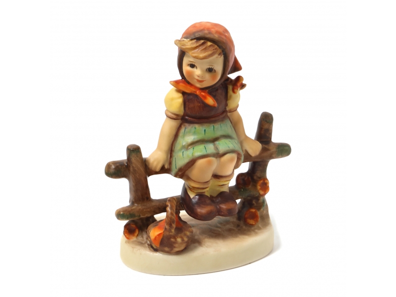 343931 - Девочка на плетне, высота 10 см, основание 6,6 х 4,5 см, HUM_112